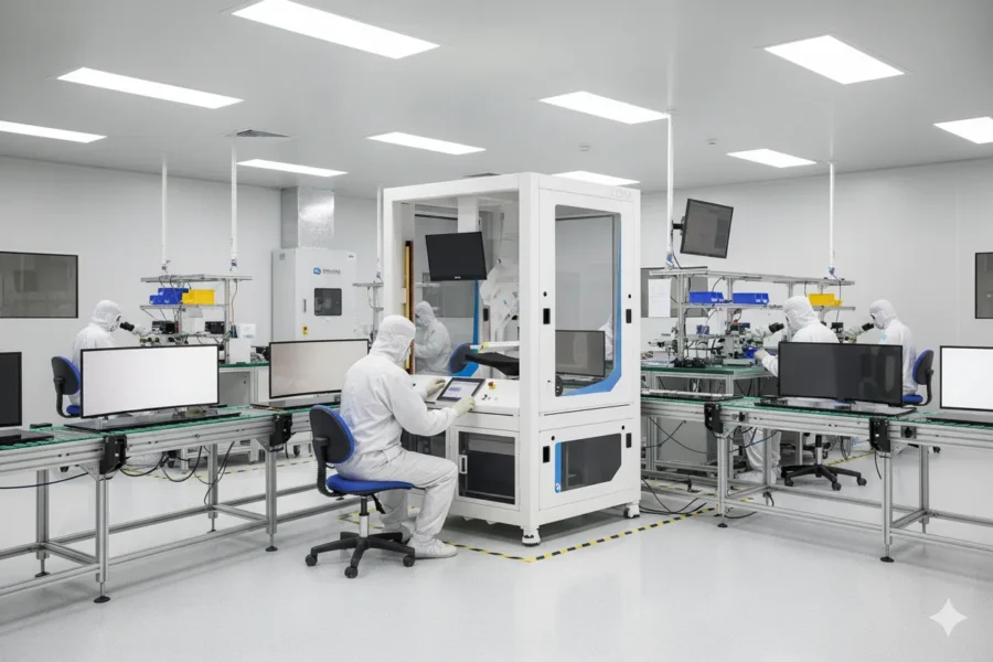 Descubra a Curved Display Inspection Machine (CDIM), um sistema de inspeção automatizado com deep learning para ecrãs curvos. Veja-a em funcionamento na Productronica 2025.